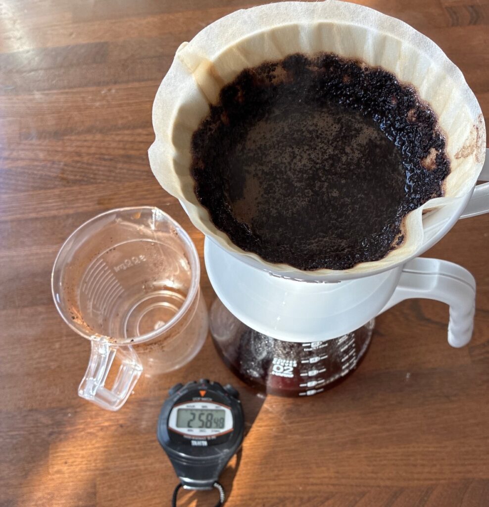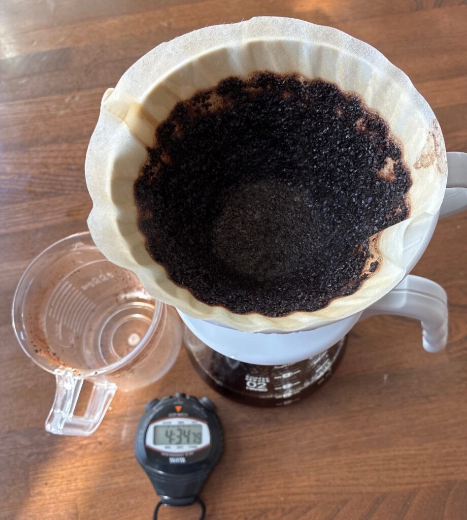 ストップウォッチを握りながら、ドリッパー内を観察。
